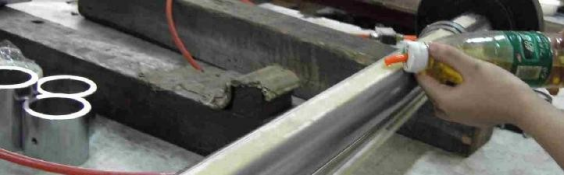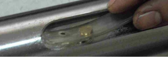 ↑7、装好胶管和羊毛毡之后,均匀加注适量的针车油。