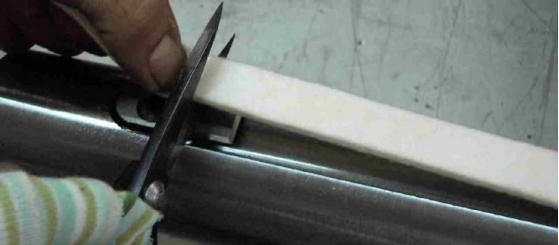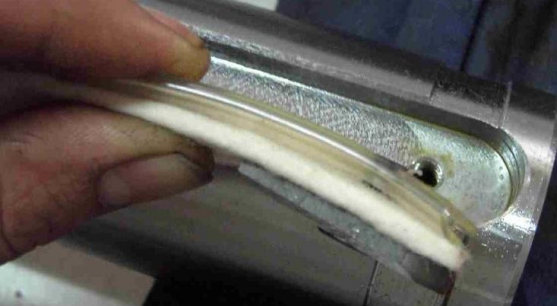 ↑5、将羊毛毡拉直至 A 向,大概长出垫片 10~15mm,剩余的剪掉。