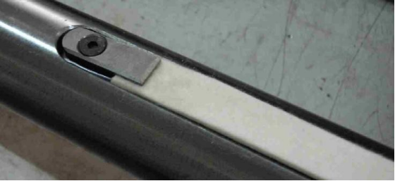 ↑10、将轴套套入轴心,轴套与末端滑差环之间留 0.5mm 间隙,用螺丝锁紧轴套。并将这 0.5mm 的间隙均匀分拨到整轴的各个滑差环之间,保证每个滑差环转动自如。
